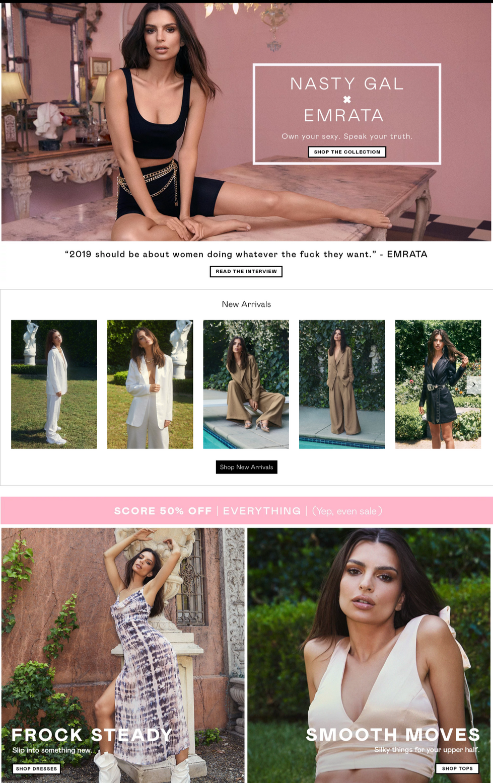 As Nasty Gal's in-house Copy & Editorial Manager, I created brand copy across digital channels including site refreshes, trend emails, promotional emails, social media, and global campaigns. The editorial leg of my work included producing content for the company blog Nasty Galaxy. I worked to utilize this blog as a platform to uplift and share the female voice through interviewing incredibly talented women including Emily Ratajkowski, Tara Lynn, Ryan Destiny, Lana Condor and more.